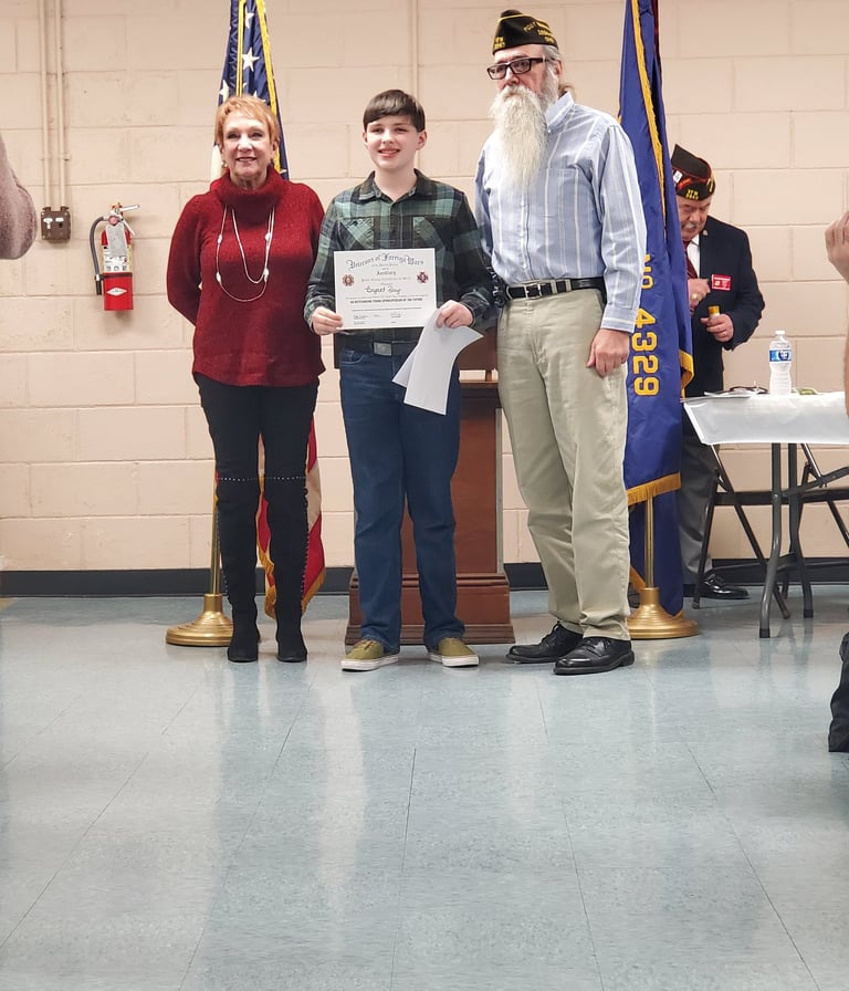 Bryant is the VFW Department Patriot Pen Winner and will represent the State of Ohio In Washington D.C.